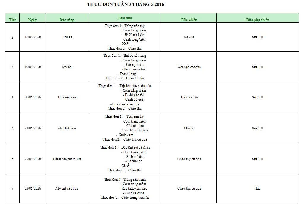 Thực đơn Tuần 3 tháng 5 năm 2022